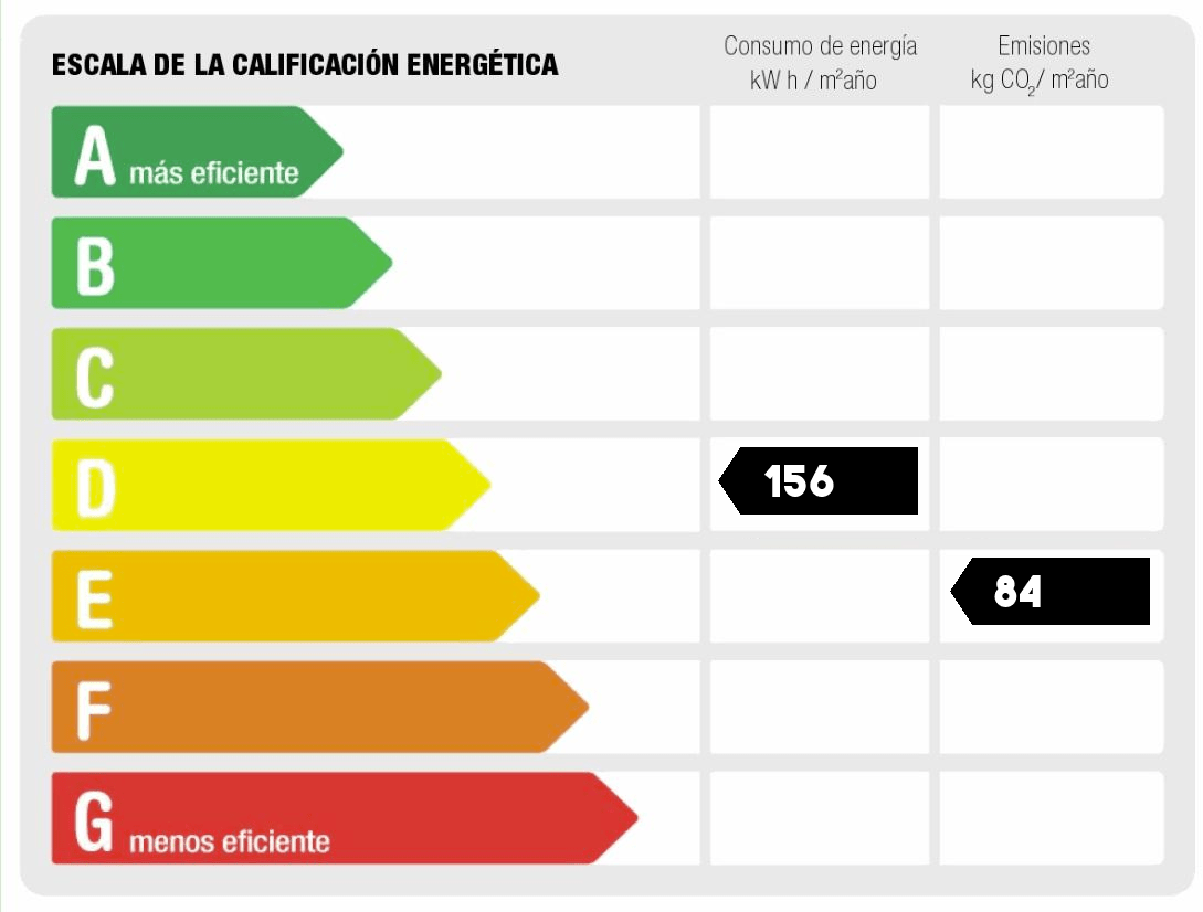 - Consumo de energía (kwh/m2 año): 156.